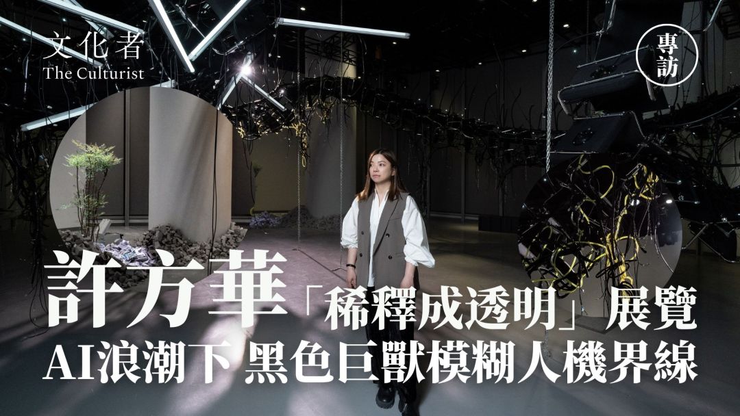 走進香港藝術發展局黃竹坑「展藝館」,一條仿如黑色巨龍的龐然大物盤旋半空,牠的頭顱一明一暗,正在發光,身體偶然微 … 閱讀全文 【專訪】許方華「稀釋成透明」展覽 AI浪潮下 黑色巨獸模糊人機界線 | 2026