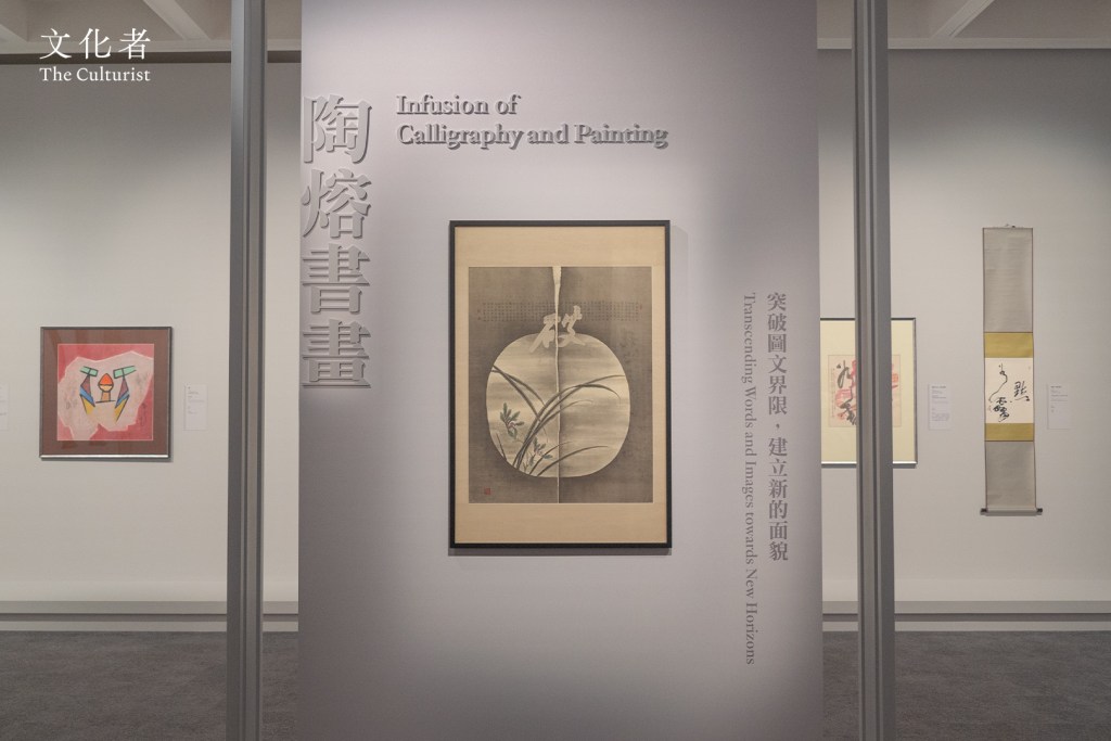 上世紀六十年代起,「新水墨運動」在香港畫壇興起,面對新舊交替的時代,翟仕堯同樣渴望在書法世界中尋求突破。受呂壽琨新水墨理論的啟發,他在傳統的書畫範疇中另闢新徑,例如為黑白色調的書法添上色彩、將幾種書體置於同一張書法裏,呈現極具個性的書風。展覽中「陶熔書畫」的部分,就能看到他如何突破文字的傳統呈現方式,打破文字與圖像、書法與繪畫的界限。