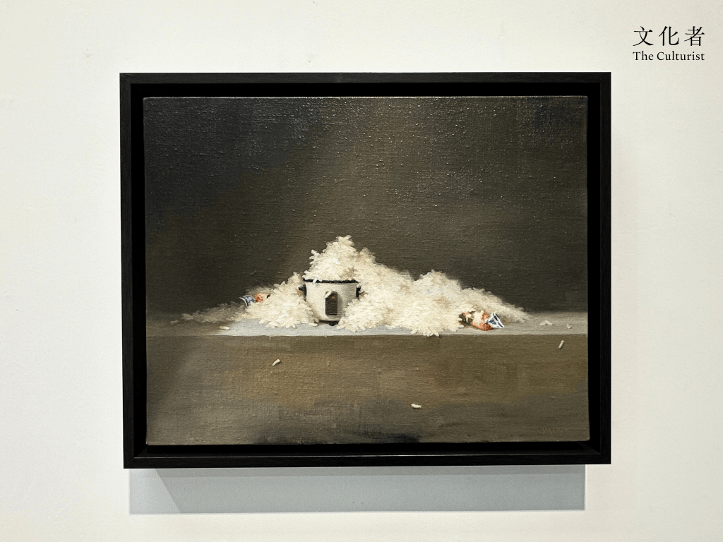 近年,把港式小食入畫成了潮流,畫功參差的作品濫售集體回憶。但藝術家張雅琹的畫作有點不同,她筆下的香港特色食物真的很有「特色」:三隻蝦餃在龍舟上奮力划行、港式奶茶與蛋撻在放風箏、三枝李X記醬油在大排檔隊啤酒、公仔麵想爬離不銹鋼煲,所有食物變成舞台主角。最有趣是,她以西方古典靜物繪畫技巧來創作,是一場東西、古今、高雅藝術與草根文化的有趣碰撞。