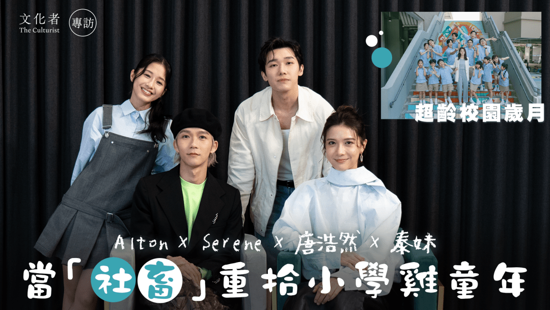 談起新劇,三位「社畜小學生」──余暉(Alton)、阿久(唐浩然)和真真(泰妹)連同「四年S班」班主任Miss伊,由自己的「社畜值」談到跟小演員們相處的經過,一時笑聲迭起,像劇中課室的延續。