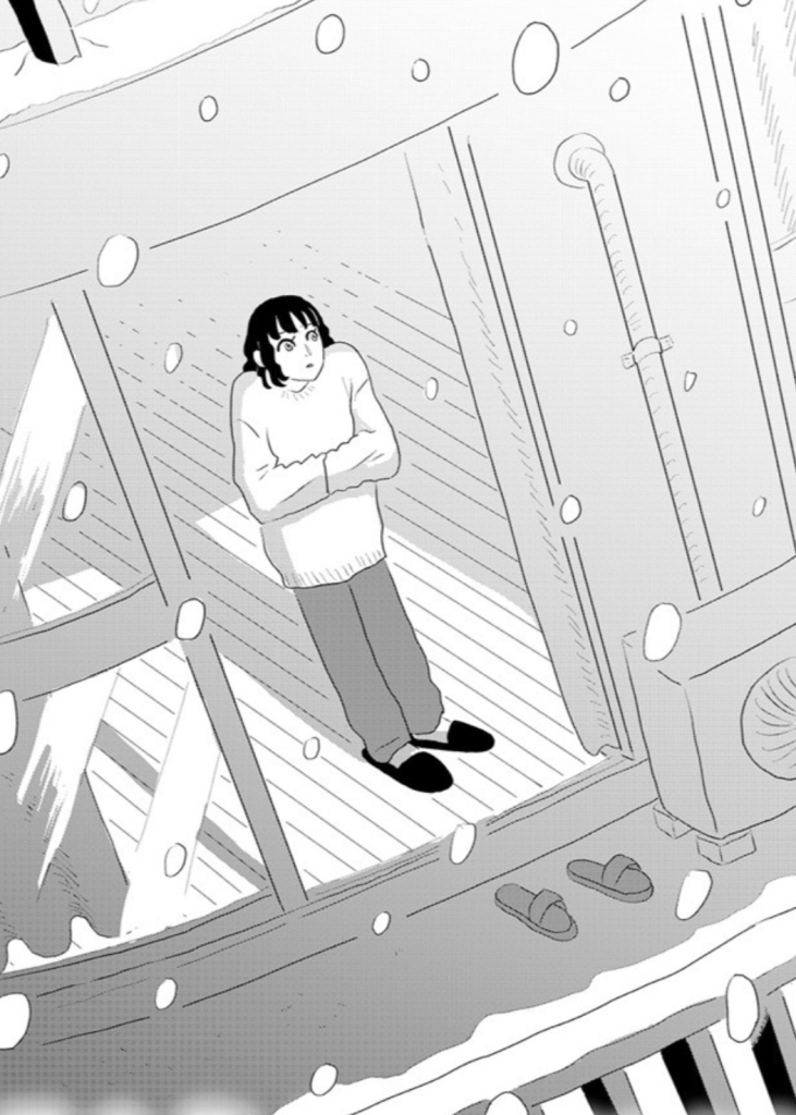 大白小蟹出生於充滿海洋氣息的沖繩,卻意外地以雪景為靈感,創作了七篇以雪為背景的故事。她的畫風簡潔,敘事細膩而富有詩意,描繪了人在感情、工作與生活困境中的掙扎與轉化。書中角色如會講話的暖爐、雪女、以及因事故變得透明的丈夫,這些奇幻元素成為各種生活難題的隱喻,通過日常的對話,化解內心糾結,激發讀者對人際關係的思考。本書是少有以短篇集登上「這本漫畫真厲害!」排名的作品。雙色印刷的設計,亦重現了連載時的風采。