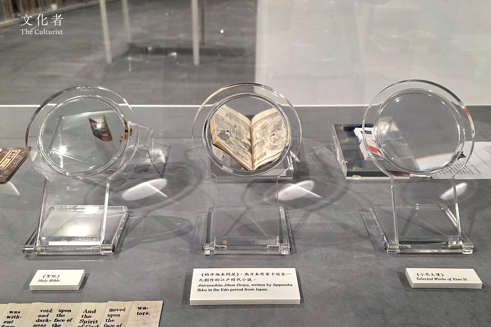 小思的收藏閱於美而志於博,除了跟本地文化相關的藏品外,也能見外國文化的影響。小思曾到日本遊學,此經驗推動她重新反思中國文化。其中,源自日語的「豆本」,或西洋所稱的「袖珍本」,便是她一度喜蒐之物。展覽裏,日本作家十返舍一九創作的江戶時代小說《的中地本問屋》、《聖經》與《小思文選》被置於放大鏡下,讓人細讀這些豆本的精緻。