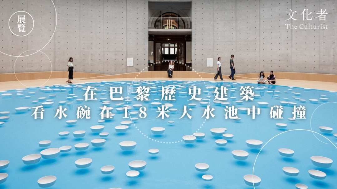 步進建築,參觀者見到一個18米大的巨大水池,池內注滿了水,你將沉浸於多感官體驗中,除了看到瓷碗在水中漂浮,抬頭一看,透過建築圓頂玻璃看到巴黎的藍天,耳中聽到白色瓷碗在水中碰撞的叮噹聲音,相當詩意。