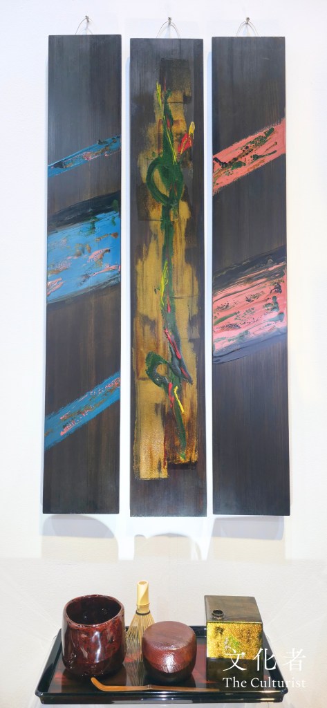采色塗「中門」的漆器,繼承五百年輪島塗技藝。細緻打磨的木器,塗上數十層以「地粉下地」調和硅藻土與生漆,實驗漆器在光線透射與立體感的極限。