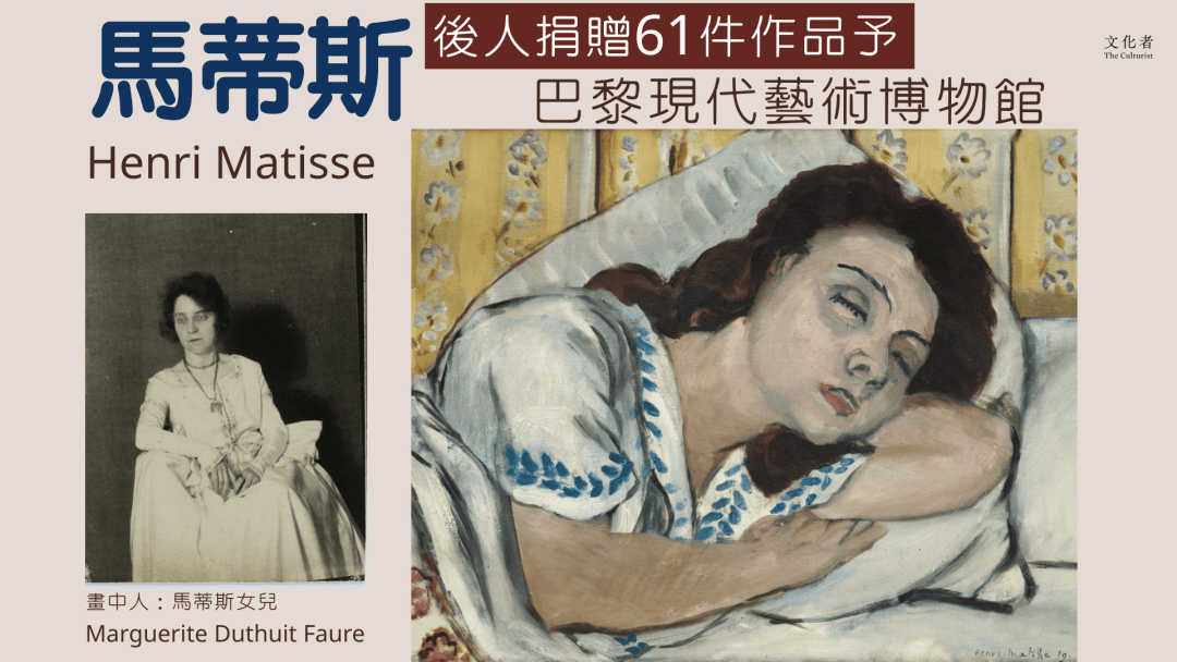位處巴黎的巴黎現代藝術博物館(Musée d’Art Moderne de Paris,簡稱MAM),藏有馬蒂斯(Henri Matisse)、畢卡索、Modigliani等名家作品,近日獲捐贈61件馬蒂斯作品。這批作品包括油畫、素描、蝕刻版畫、石版畫及一座雕塑,一直由馬蒂斯家族保存,多幅作品中都繪畫了馬蒂斯的女兒:Marguerite。