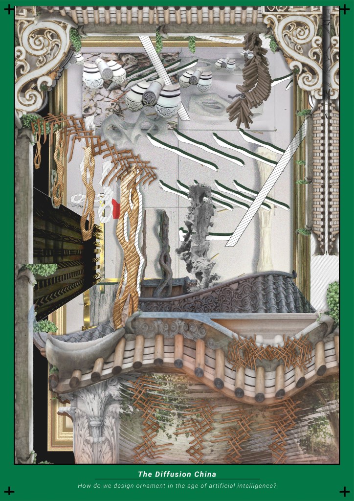 空間的構成,常在不知不覺間影響人們的觀看方式,而對羅子健來說,科技與工具的運用,更能協助我們以過去無法做到的方式進行想像,從而創造出更豐富、更具層次的空間體驗。例如在他的專案《擴散、檔案、延續》中,他以中國建築裝飾的資料集訓練AI,將裝飾重構為「記憶與結構」的語彙,而不僅是表層的修飾。